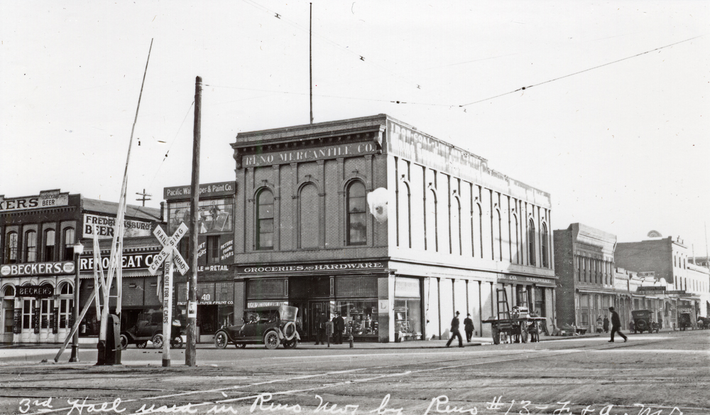 The building stood in a prime location on the southern side of the railroad tracks, firmly in the heart of Reno's early commercial district. | Source: Special Collections, University of Nevada, Reno LibrariesDownload Original File