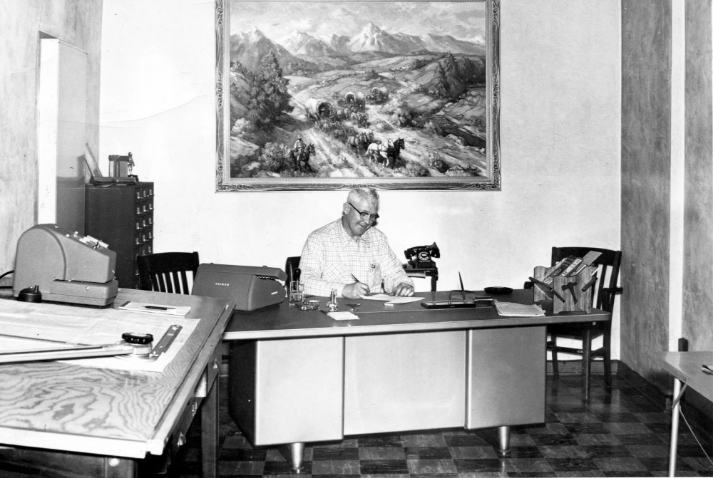 Martin Schwamb ID: 838 | This file appears in: Martin Iron Works Martin Schwamb at his desk in the plant on E. 4th Street, sitting below his favorite landscape painting. | Source: Fred Schwamb Download Original File SourceFred Schwamb "Martin Schwamb" appears in: Martin Iron Works