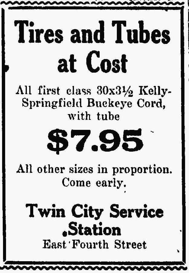 Julius Redelius opened the Twin City Service Station on the site of his poultry farm on East 4th Street. The station sold gas as well as auto supplies, as seen in this 1925 ad. | Date: October 15, 1925 | Source: Reno Evening GazetteDownload Original File